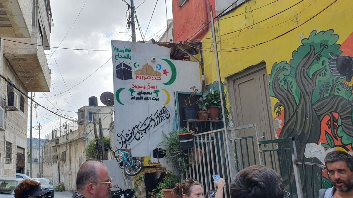 Наиболее часто встречаемые элементы местного декора – стилистические изображения золотого купола мечети Скалы, куб Каабы в Мекке с призывами к хаджу, всеохватывающие куфии и популярный у сторонников ООП V-образный "арафатовский" жест из двух пальцев - как символы "палестинского сопротивления". Но все в рамках дозволенного, хоть и на грани, ибо откровенная "повстанческая" символика может привлечь внимание израильских стражей порядка и, как следствие, навлечь неприятности на ее авторов или тех, кто вовремя ее не замарал.