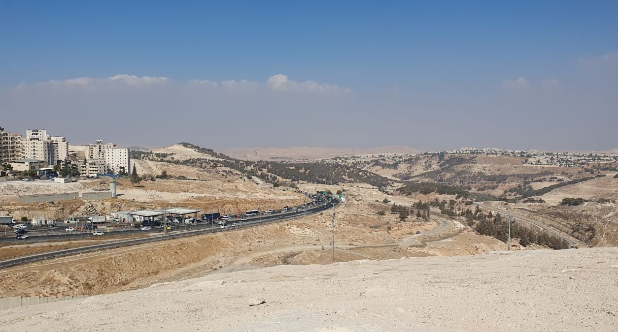 Нас специально привезли на один из танахических холмов, расположенный недалеко от одного из КПП по дороге из Иерусалима к Маале-Адумим и далее к Мертвому морю и между трех арабских районов – Азария, Азаим и Ат-Тур. С высокого каменного плато хорошо видна та самая незастроенная пока "зона E1", которая в скором времени, согласно генеральному плану, превратится в жилой район Мевасерет-Адумим – еще один еврейский пригород Иерусалима.