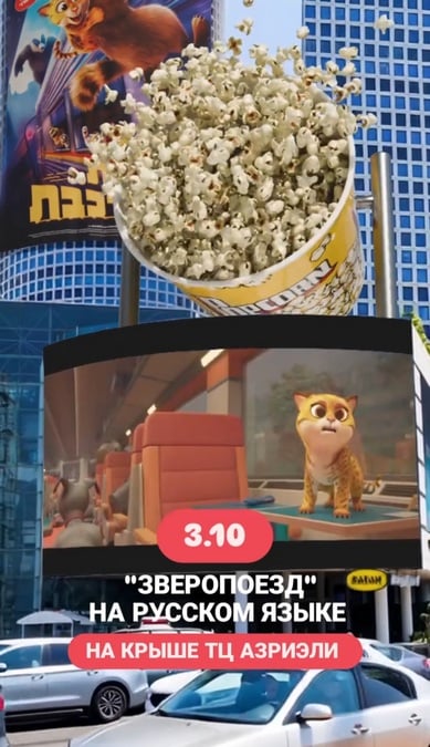 Продажа билетов на большой кинопоказ "ЗВЕРОПОЕЗД" на русском языке на крыше ТЦ АЗРИЭЛИ в кинотеатре Мувиленд Summer Sky Тель-Авив 3 октября в самом разгаре. Билеты здесь>>