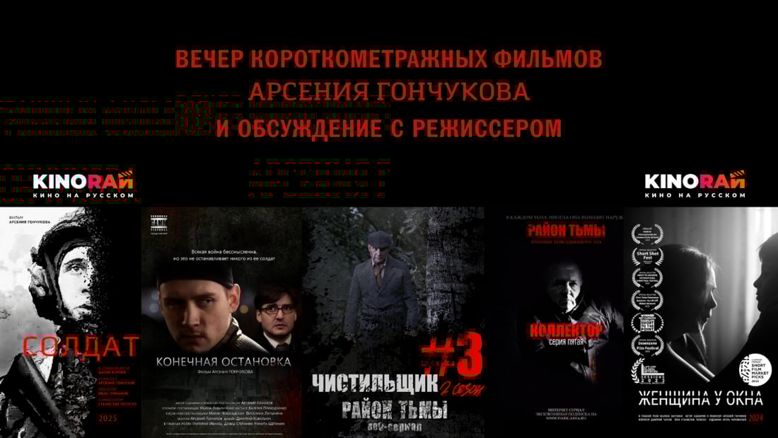 КиноРай приглашает вас на уникальный вечер короткометражных фильмов Арсения Гончукова — режиссера, сценариста, писателя, чьи фильмы говорят о главном.