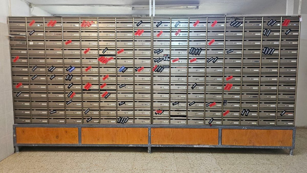 Почтовые ящики жителей кибуца Нир Оз. Черные метки - погибшие, красные - похищенные, синие - похищенные и вернувшиеся домой: