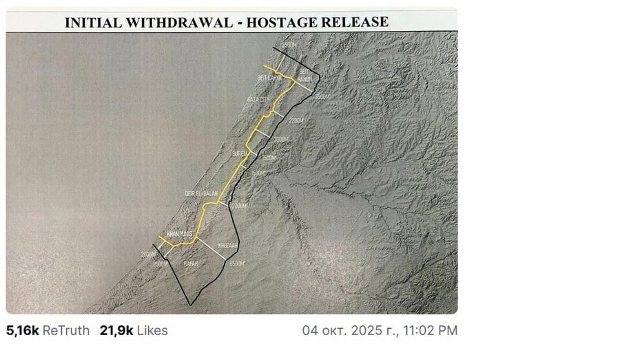 Судя по всему, эти позиции заняты по принципу "чтоб два раза не вставать" — уже с учетом "карты Трампа", то есть линии, на которую войска должны будут отодвинуться после освобождения всех заложников. Тогда контролируемая армией территория сократится от 58% до 53% площади Сектора, и уже перенесенные армейские базы можно будет оставить на этих же местах.