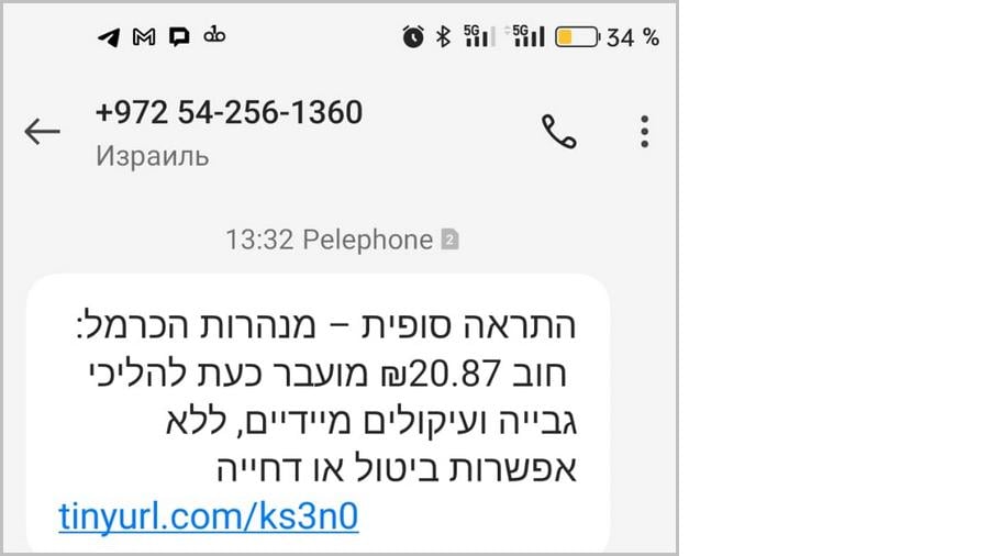Расчет основывается на том, что человек не станет вспоминать, ездил ли он (или кто-либо на его автомобиле) через хайфский тоннель, и даже если усомнится, решит, что проще уплатить 20 шекелей, чем затевать выяснения. Тут его реквизиты и достанутся мошенникам, причем вместе с кодом, подтверждающим какие-то действия с этим реквизитом.