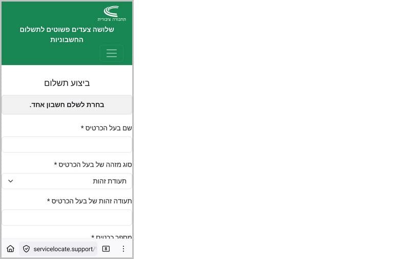 енная в сообщении ссылка ведет на "фишинговый" сайт с адресом https://servicelocate.support/99/, на котором пользователь видит интерфейс оплаты, замаскированный под "транспортный" сервис.