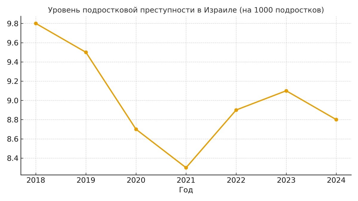 По данным Центрального статистического бюро Израиля, уровень преступности среди несовершеннолетних остается "стабильно высоким". На каждую тысячу подростков в возрасте 12–18 лет приходится около девяти инцидентов с заведенными уголовными делами.