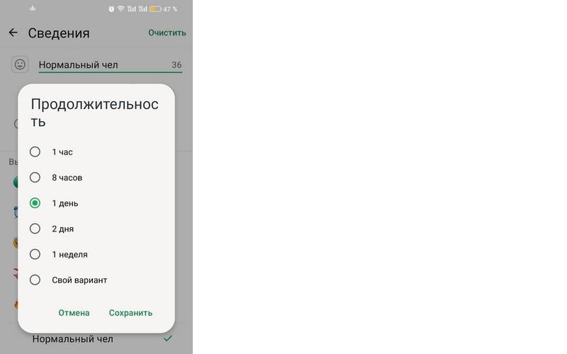 рь можно рядом со своим аватаром размещать временный "статус" – как произвольный, так и один из предустановленных, с соответствующей иконкой. Эта строчка задается в настройках.