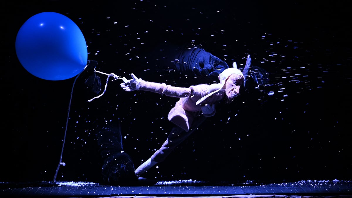 Это зло метафорическое, условное, оно не имеет лица. Тени великанов, демонов, облака — будто звери с адской жуткой пастью. Силы, которые пытаются сокрушить отважного человечка, поработить его, растоптать, уничтожить, — скрыты. Они вычерчены, выстроены многозначно, символически. Люди, которые ведут кукол и виртуозно, прекрасно "оживляют" маленьких существ мира-театра, тоже сражаются со злом. Дрожат на ветру. Гибко увертываются от снежных вихрей. Идут сквозь мрак и бурю. История — о них. Смысл — в них.