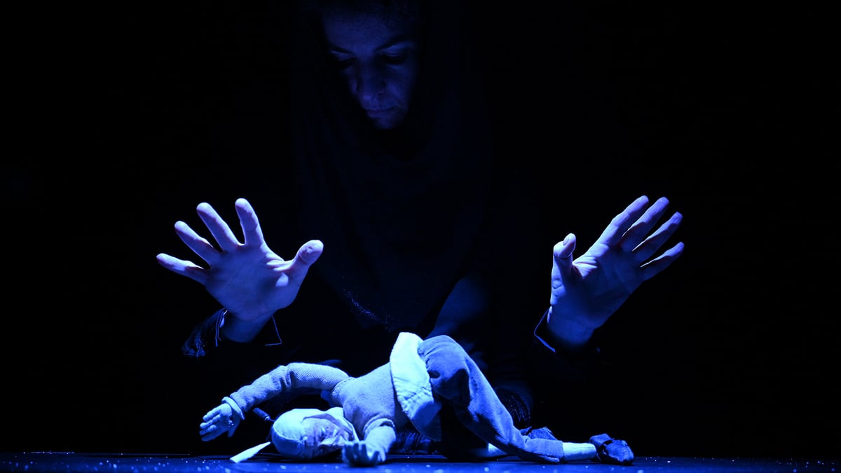 …Вечер фестиваля, зал "Ангар". Рыжие лепестки-дольки с паролем Jaffa Fest вписываются в стекло вечернего неба. И летят по Яффо в горизонт, в завтра, мистические орки на своих электросамокатах. В зале на полу игрушечная мельница. Колеблется свечка. Дует зимний ветер. Две молодые женщины в черном сидят рядом с большой куклой.