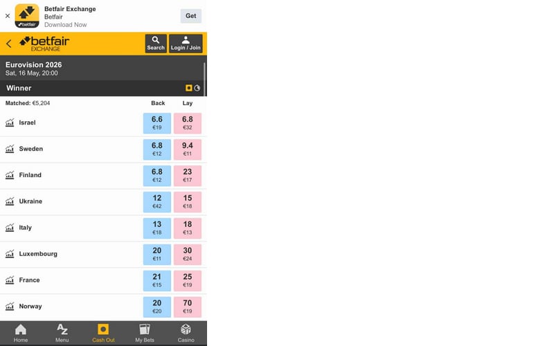 Появились первые прогнозы относительно итогов "Евровидения" в 2026 году. Хотя ни исполнители, ни песни пока неизвестны, британская букмекерская биржа "Бетфэйр" уже принимает ставки на победу тех или иных стран.