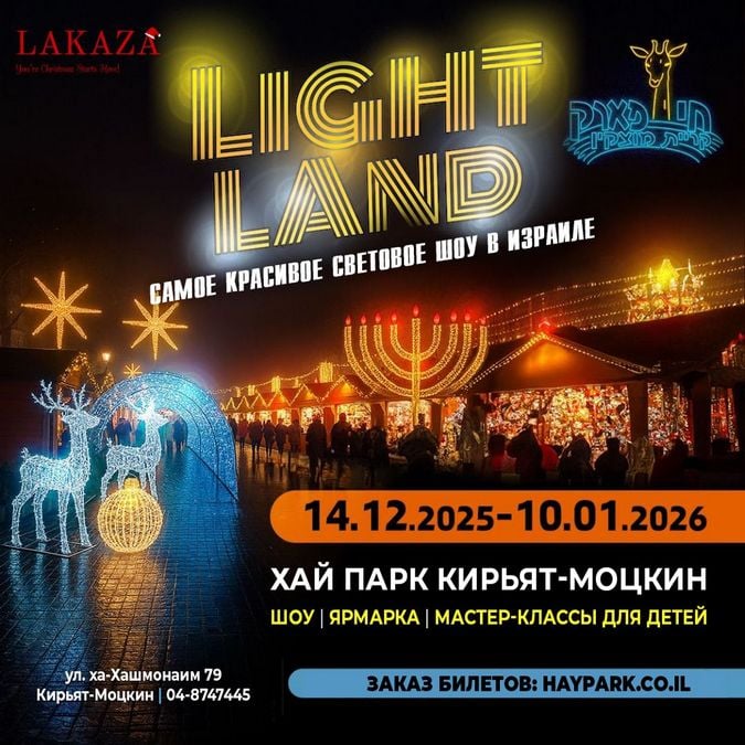 Хай парк в Кирьят-Моцкине приглашает на фестиваль света LIGHT LAND. Начиная с ханукальных каникул и до 10 января в одном из главных зоопарков Израиля можно будет увидеть яркое и впечатляющее световое шоу, ощутить атмосферу Хануки, погулять по освещенным тропинкам и световому тоннелю среди сказочных персонажей.