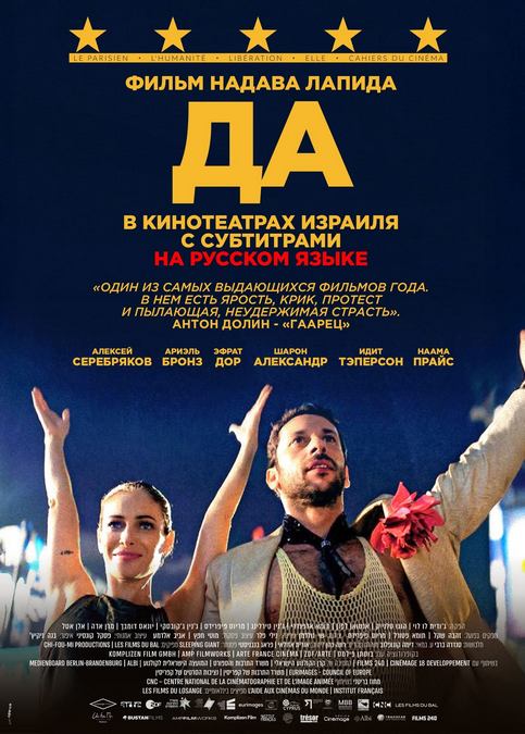 В январе "КиноРай" представит в кинотеатрах Израиля кинокартину "ДА" - новый фильм Надава Лапида, одного из самых уважаемых израильских режиссеров в стране и в мире. Картина номинирована на 8 премий "Офир", включая лучшие фильм, режиссуру и сценарий.