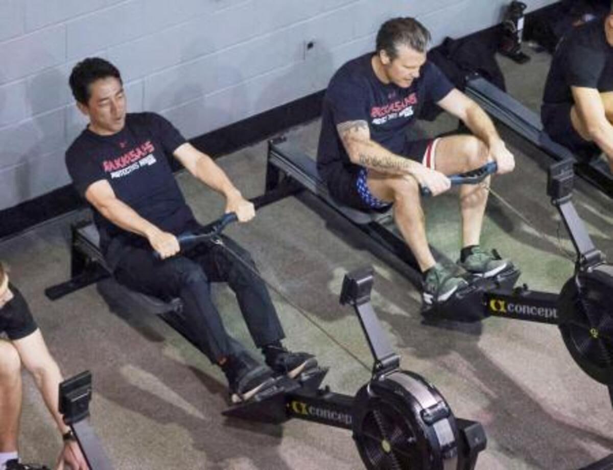 Для демонстрации полной дружбы Пит Хегсет, известный своим атлетическим образом, предложил японскому министру провести совместную тренировку по правилам армии США, выступив в одинаковых чёрных футболках. Гость из Токио принял вызов и старательно отжимался, стараясь не отставать от покрытого татуировками американского коллеги. Коидзуми выдержал весь курс тренировки, хотя под конец, как сам признался, испытал лёгкое обезвоживание организма.