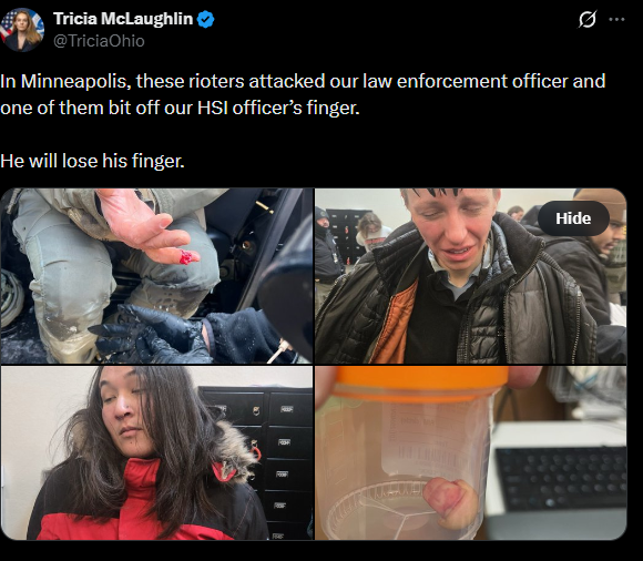 Соответствующие кадры опубликовала в сети Х помощница министра внутренней безопасности Триша Маклафлин. Она заявила, что травма оказалась необратимой, и спасти палец невозможно.