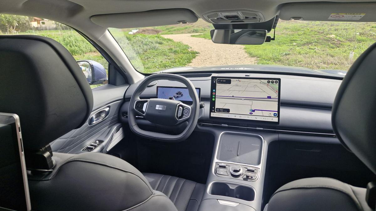 Салон встречает нас приятной подсветкой настроения с 256 оттенками. Приборная панель облицована мягкими, приятными на ощупь материалами, и качество сборки тоже на высоте. Тачскрин мультимедиа 15,4 дюймов, система мультимедиа легка в понимании, с высокой резолюцией, с большой скоростью. Она поддерживает Appel Car Play, а Android Auto импортер обещает установить через несколько месяцев с помощью дистанционного обновления. К услугам водителя голосовое управление Hi Geely.