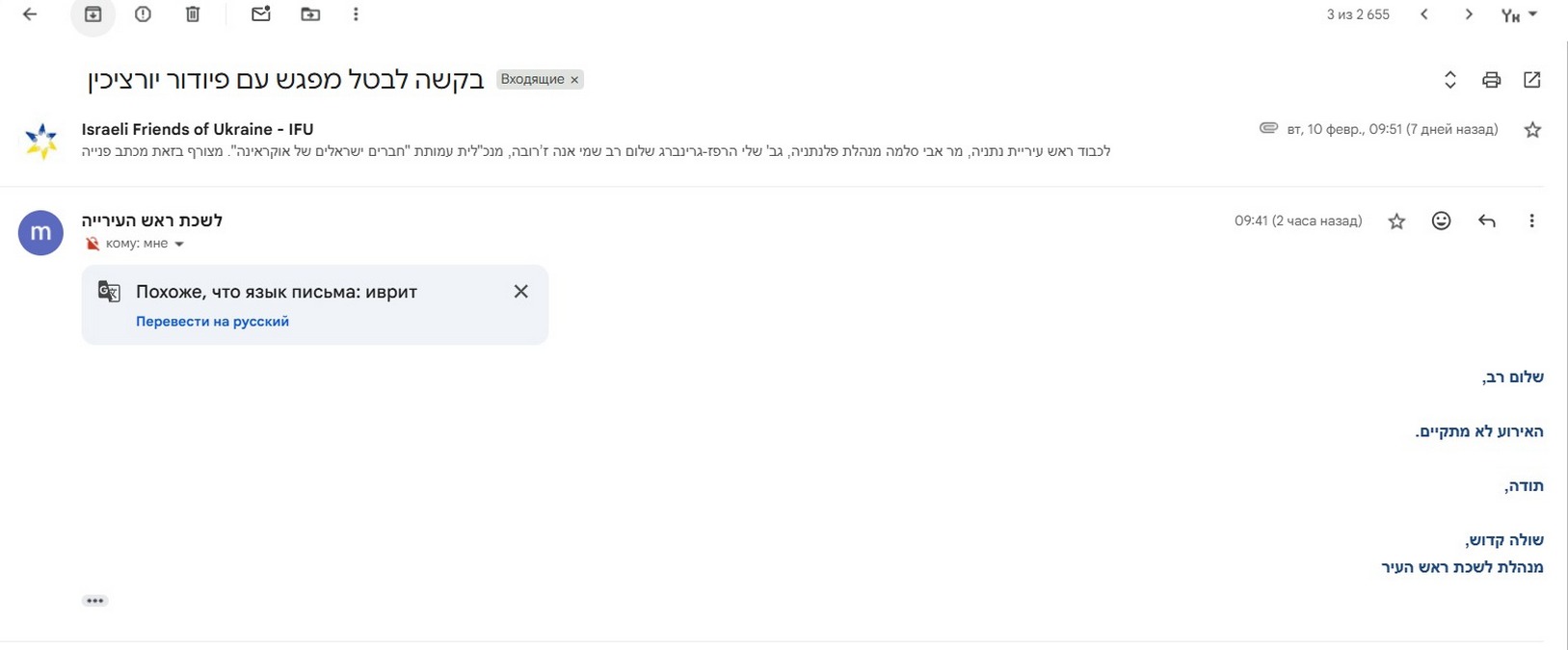 Несмотря на заверение канцелярии мэра Нетании Ави Слама об отмене спорного мероприятия в планетарии Нетании с участием "доверенного лица Путина", оно все-таки состоялось. Это стало известно утром в среду, 18 февраля. О встрече сообщил целый ряд российских СМИ, в том числе ТАСС и РИА Новости.