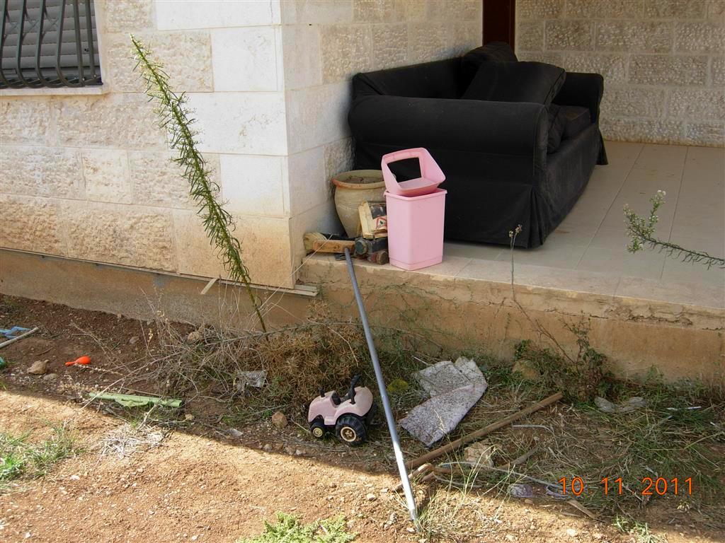 А я побывала в поселении Итамар в ноябре 2011, в том же году, когда произошло убийство. Тогда во дворе дома семьи Фогель еще все оставалось, как при жизни его хозяев. Старый диван, на котором в теплую погоду сидели дети, брошенная машинка, лопатка и погремушка…