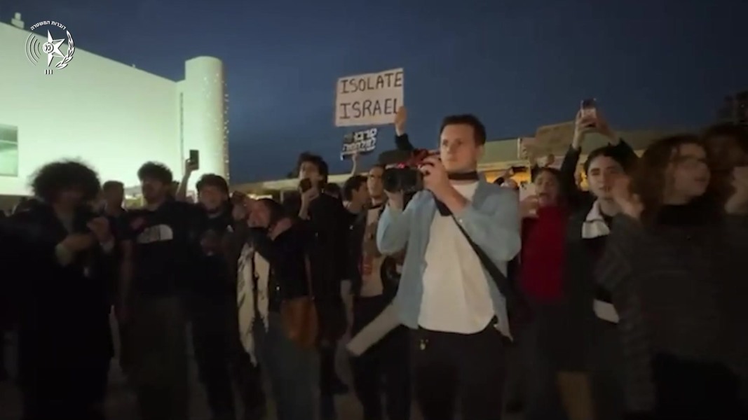 כוחות המשטרה פעלו הערב לפיזור הפגנה בלתי חוקית ברחבת הבימה בת"א, לאחר שנציג פיקוד העורף הבהיר כי ההתקהלות אסורה עקב התקנות לשעת חירום והמצב הביטחוני.