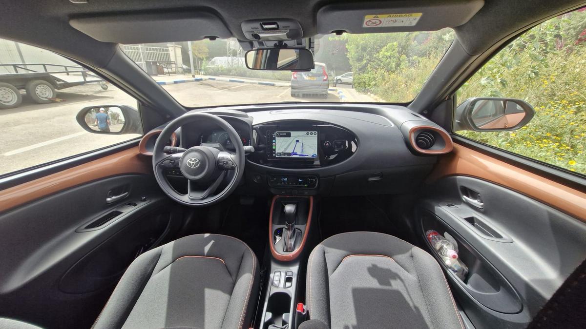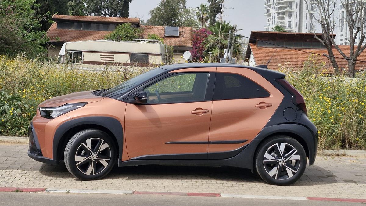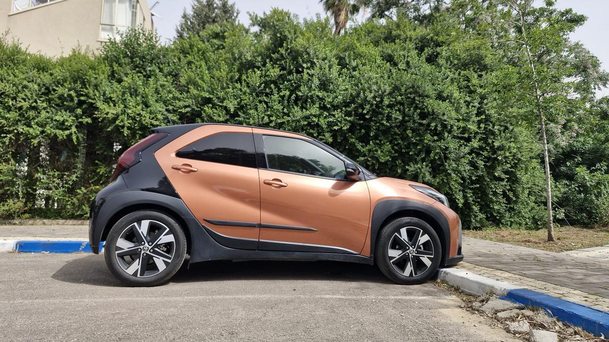 Мы получили от импортера Toyota Aygo X (HEV) бронзового цвета с черной крышей, в топовой комплектации Peak стоимостью 129,990 шекелей, тогда как базовая модель Pure стоит 123,990 шекелей.