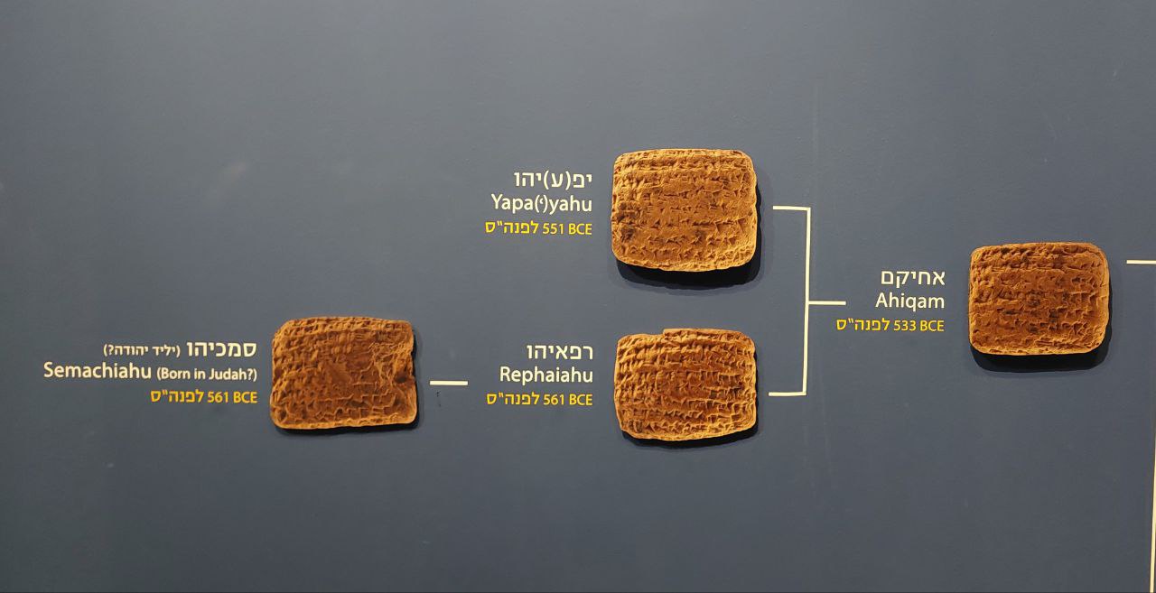 В документах также упоминаются и другие иудейские имена, такие как Ахикам, Аггай и Товшалом и др. У более поздних поколений вавилонских изгнанников (не родившихся в Иудее) также были имена, представляющие комбинацию вавилонского элемента с иудейским. Например, Йеhу Сар-Оцор (Йеhу, защитник царя). Это сочетание отражает желание сохранить иудейскую идентичность и стремление интегрироваться в вавилонское общество.